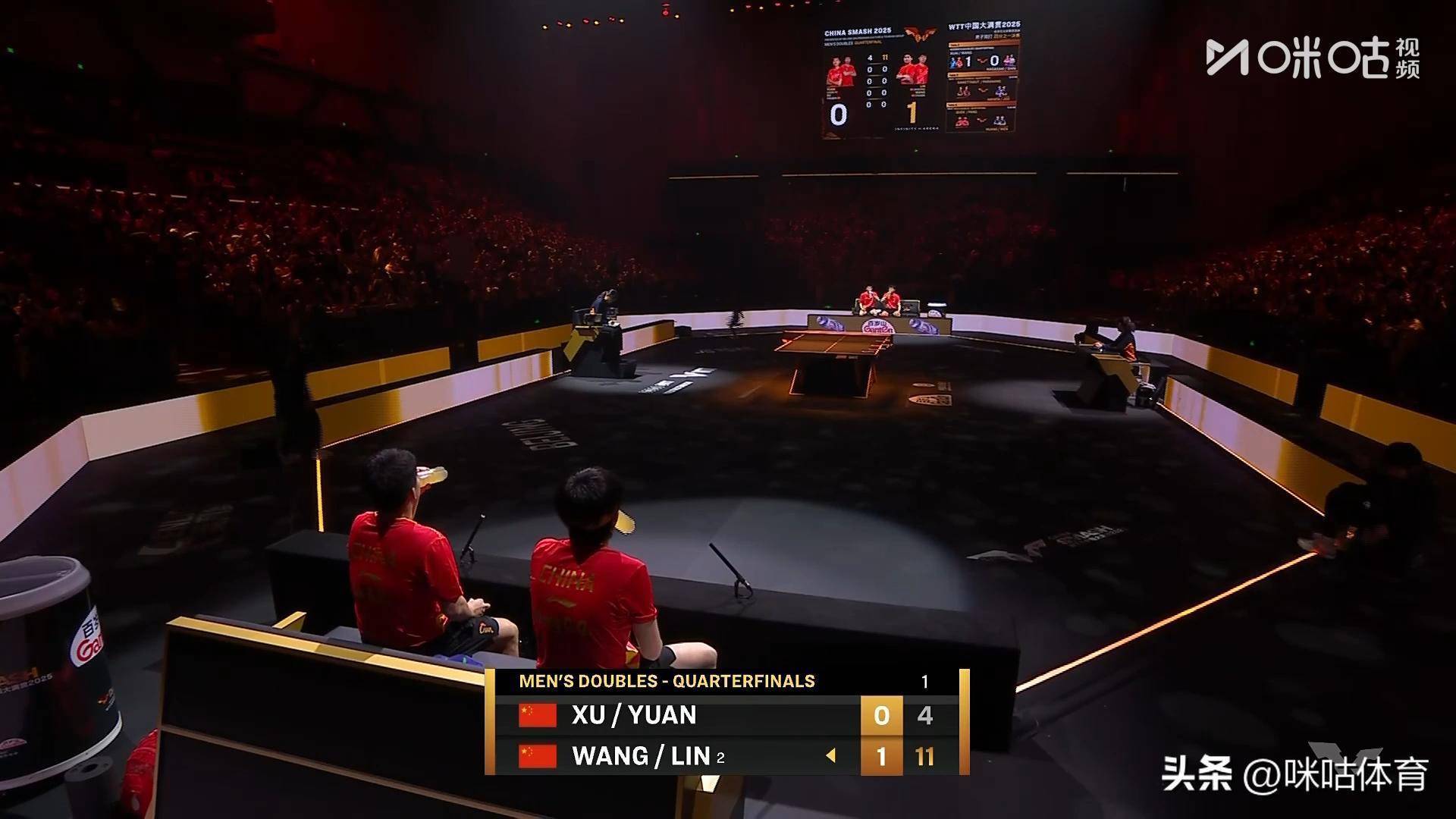 北京本事10月2日,WTT中国大满贯正赛,男双1/4决赛,王楚钦/林诗栋和徐瑛彬/袁励岑展建国乒里面大战,这是王楚钦一日三赛的第一场比赛。