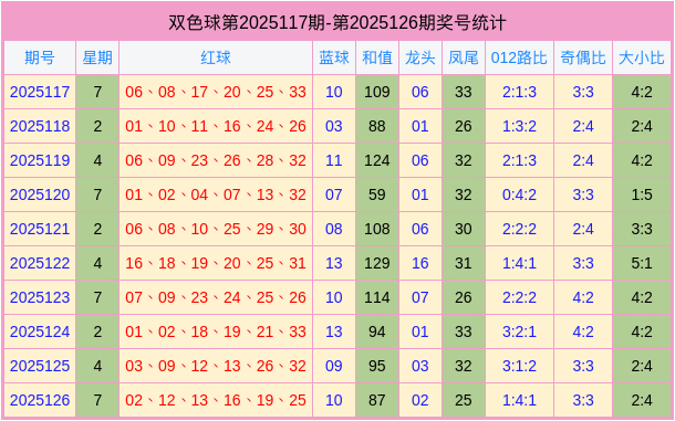 开奖转头:大乐透第2025126期奖号为:01、08、18、27、30 + 06、07。 奖号的奇偶比为2:3,四区比为2:1:1:1,和值为84,跨度为29。 大乐透近十周同星期二奖号统计表 奇偶分析:上周星期六的奖号中奇数开出2枚,偶数开出3枚;近十周同星期六的奖号统计知道偶数开出21枚,奇数开出29枚;本周星期偶数前区下号较多,线路较热展望,参考2:3...
