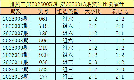 上期回来:摆列三第2026013奖号开出477,奖号质合比为2:1,大小比为2:1,跨度为3,类型为组三。
