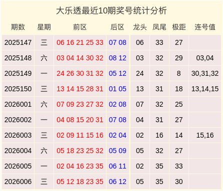 第2026007期大乐透数据统计分析